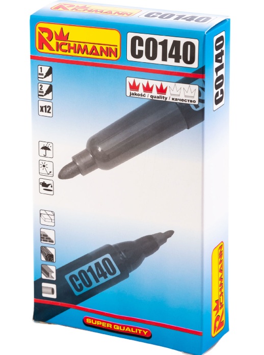 Detali informacija Kodas: 11103, Markeris Rašalo Richman Juodas dviejų galų (042-C0140)(12)(5906741601405)
