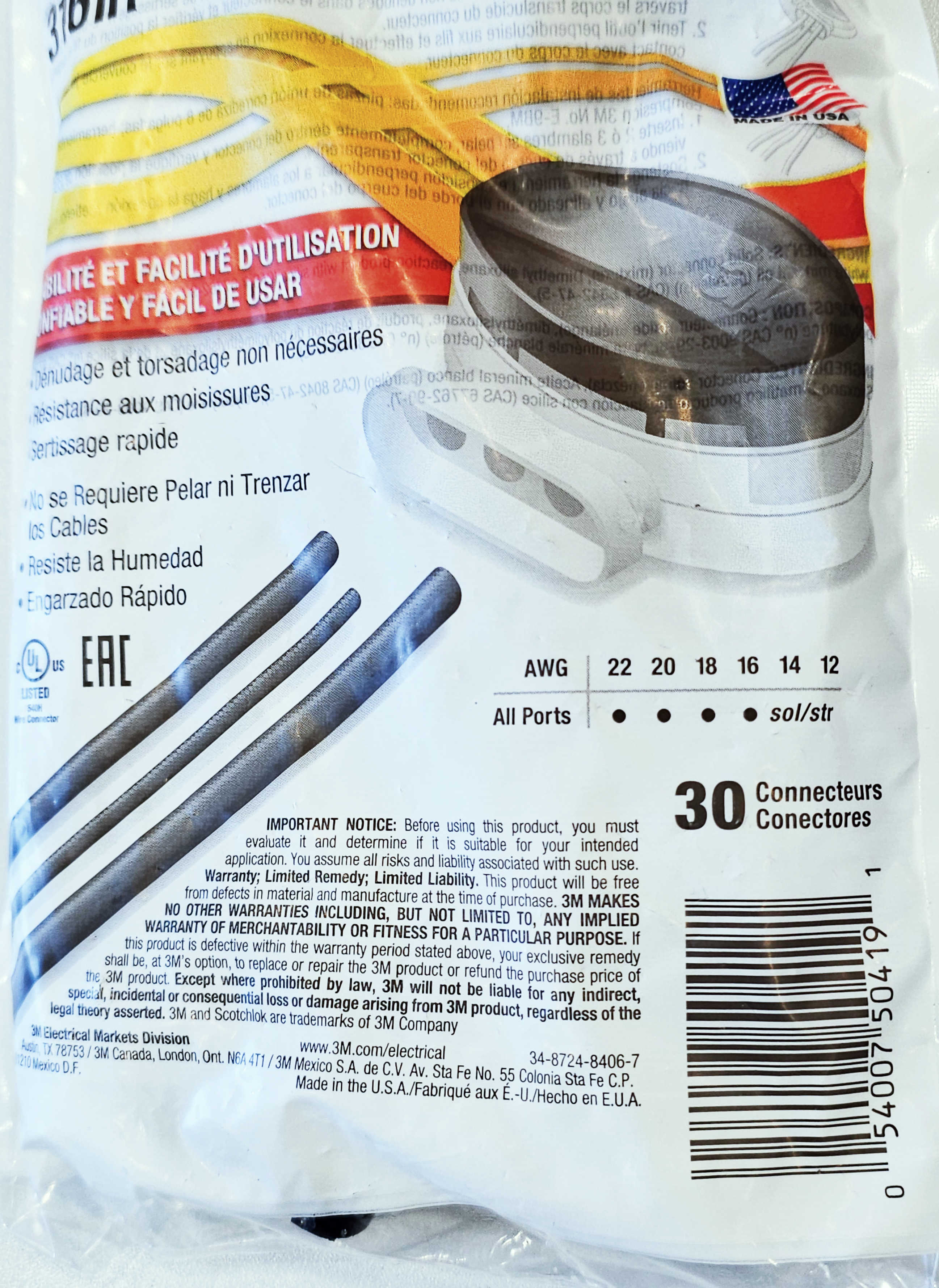 Detali informacija Kodas: 11177, Kontaktas greitam laidų sujungimui su žele 3 kont. 0.5-1.5mm² (0.5-1.5mm) 316IR 3M Scotchlok™ (30)(316IR-3M)