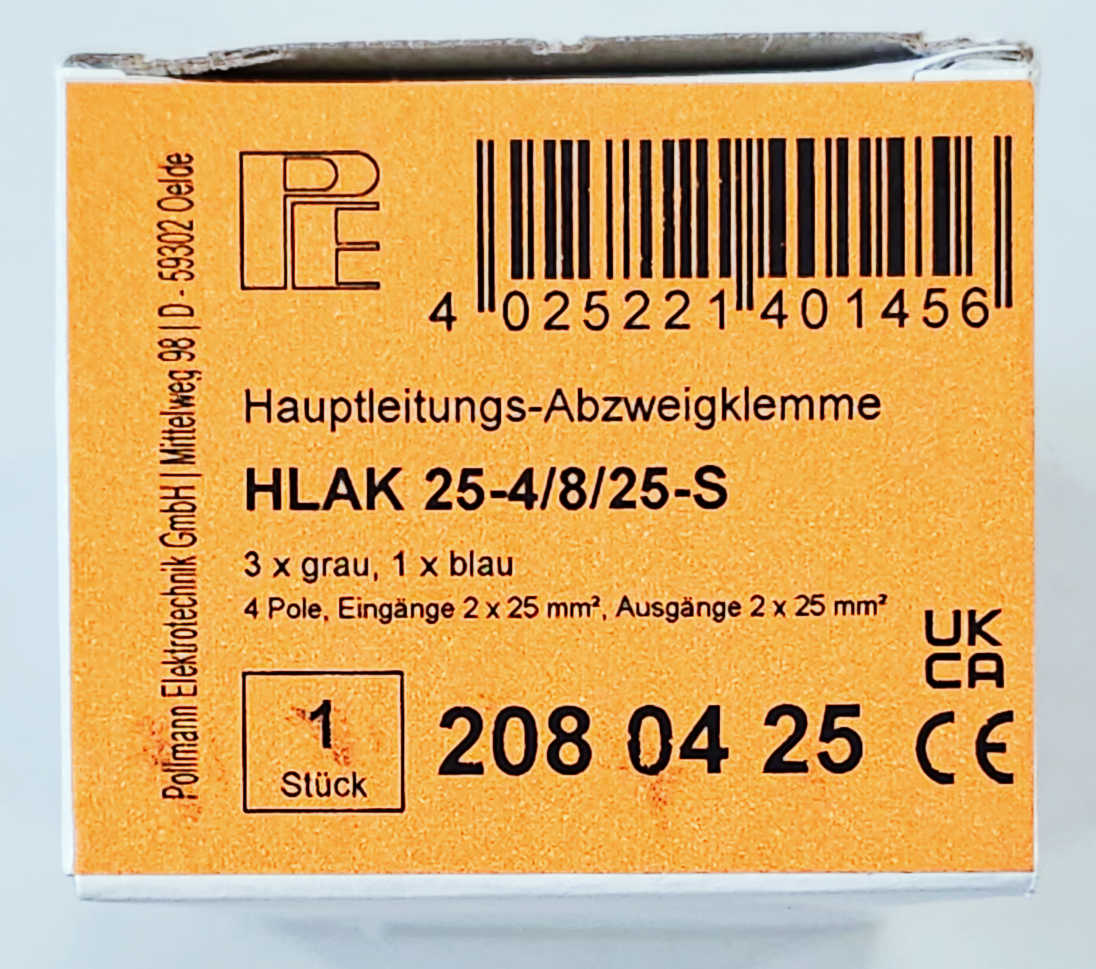 Detali informacija Kodas: 11189, Gnybtas skirst-sujung 4P (3P+N) In: 2x25mm², Out: 2x25mm² HLAK Polimann 25-4/8/25 S (208.04.25) (4)