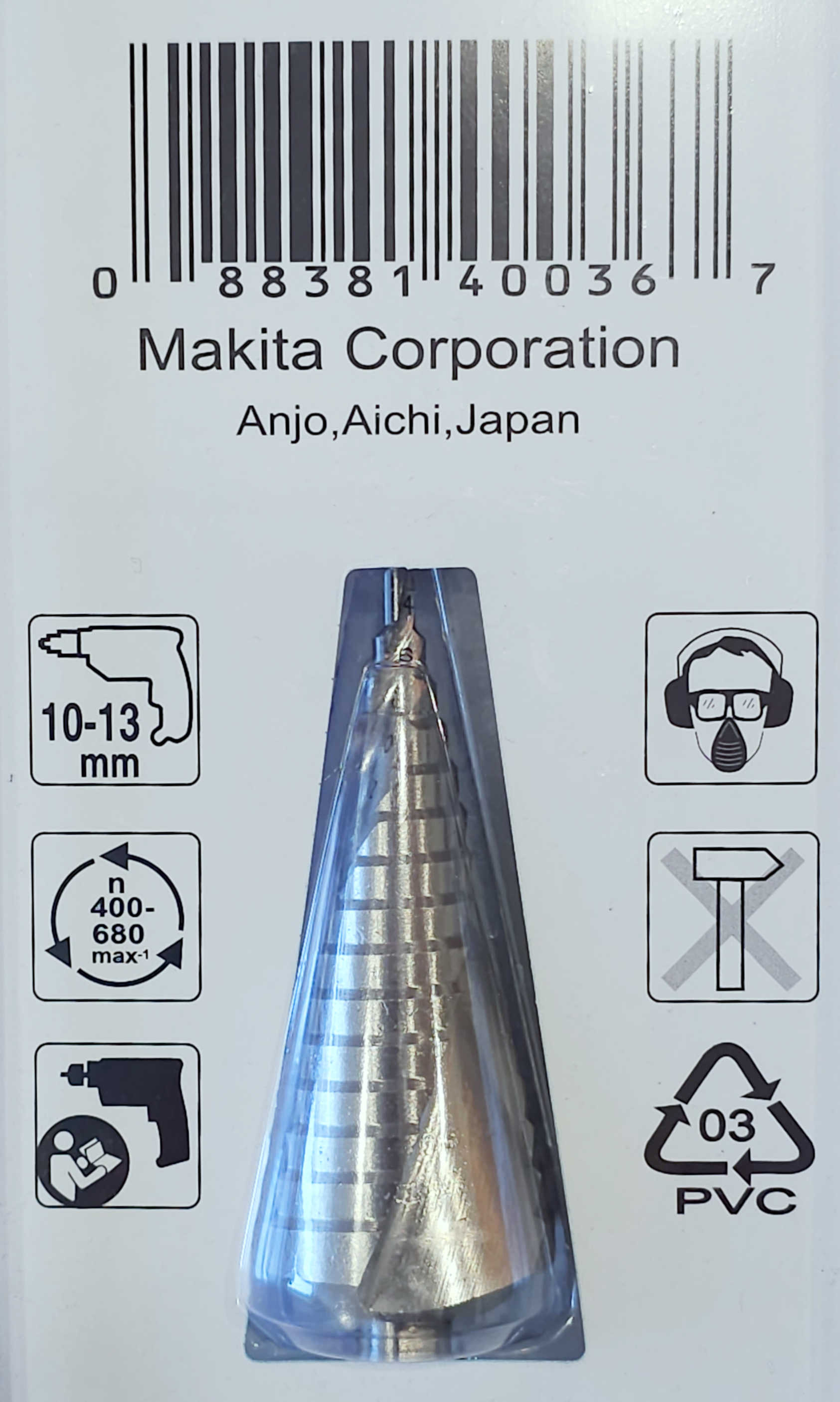 Detali informacija Kodas: 11193, Grąžtas metalui -skardai pakopinis 4-32mm Makita Japonija D-40163 (MAKZD40163)