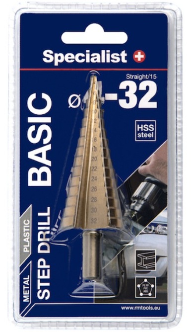 Detali informacija Kodas: 11205, Grąžtas metalui -skardai pakopinis 4-32mm SPECIALIST BASIC (64/7-0432, 4779039131264)