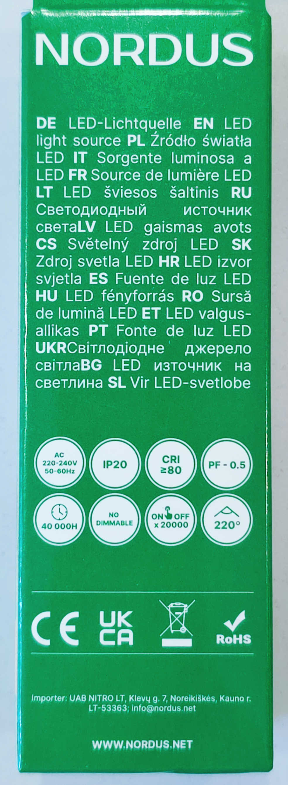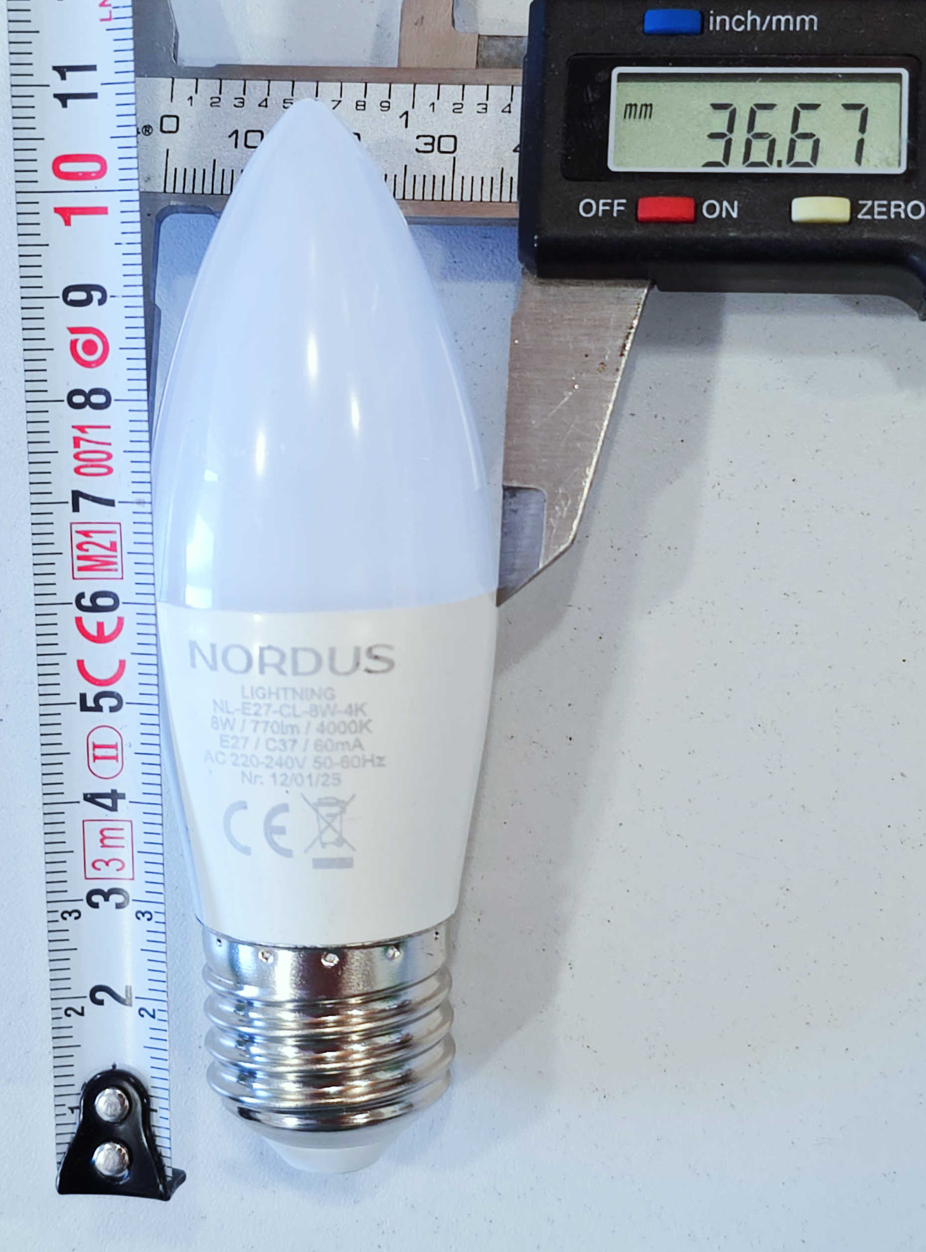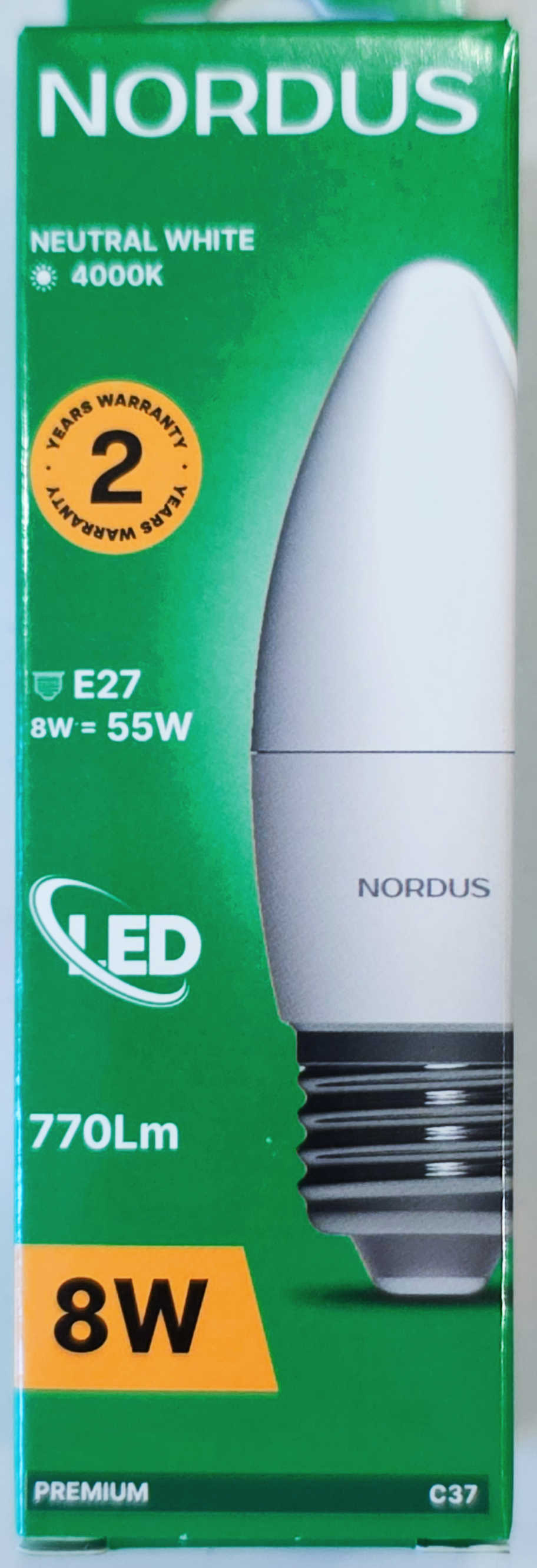 Detali informacija Kodas: 11254, Lempa LED 8W žvakė E27 matin 4000K 770lm NORDUS (NL27CL84)