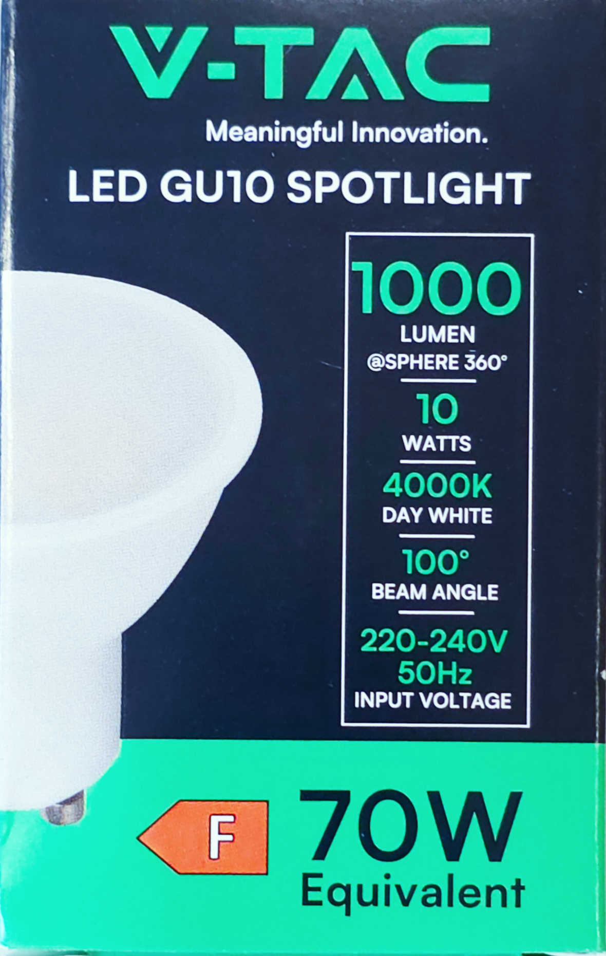 Detali informacija Kodas: 11279, Lempa LED GU10 10W 220V 110° 4000K 1000lm V-TAC (LED111110)