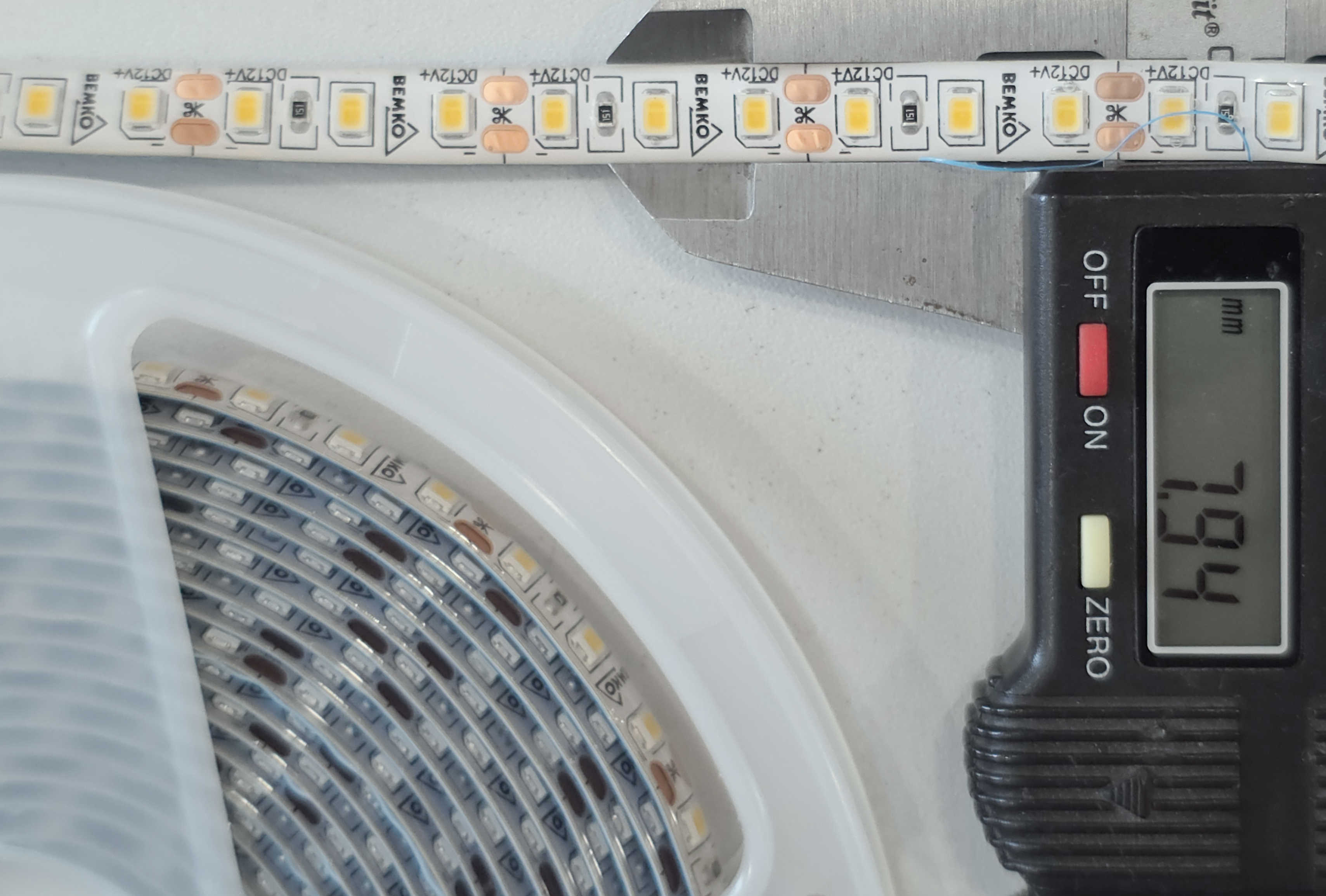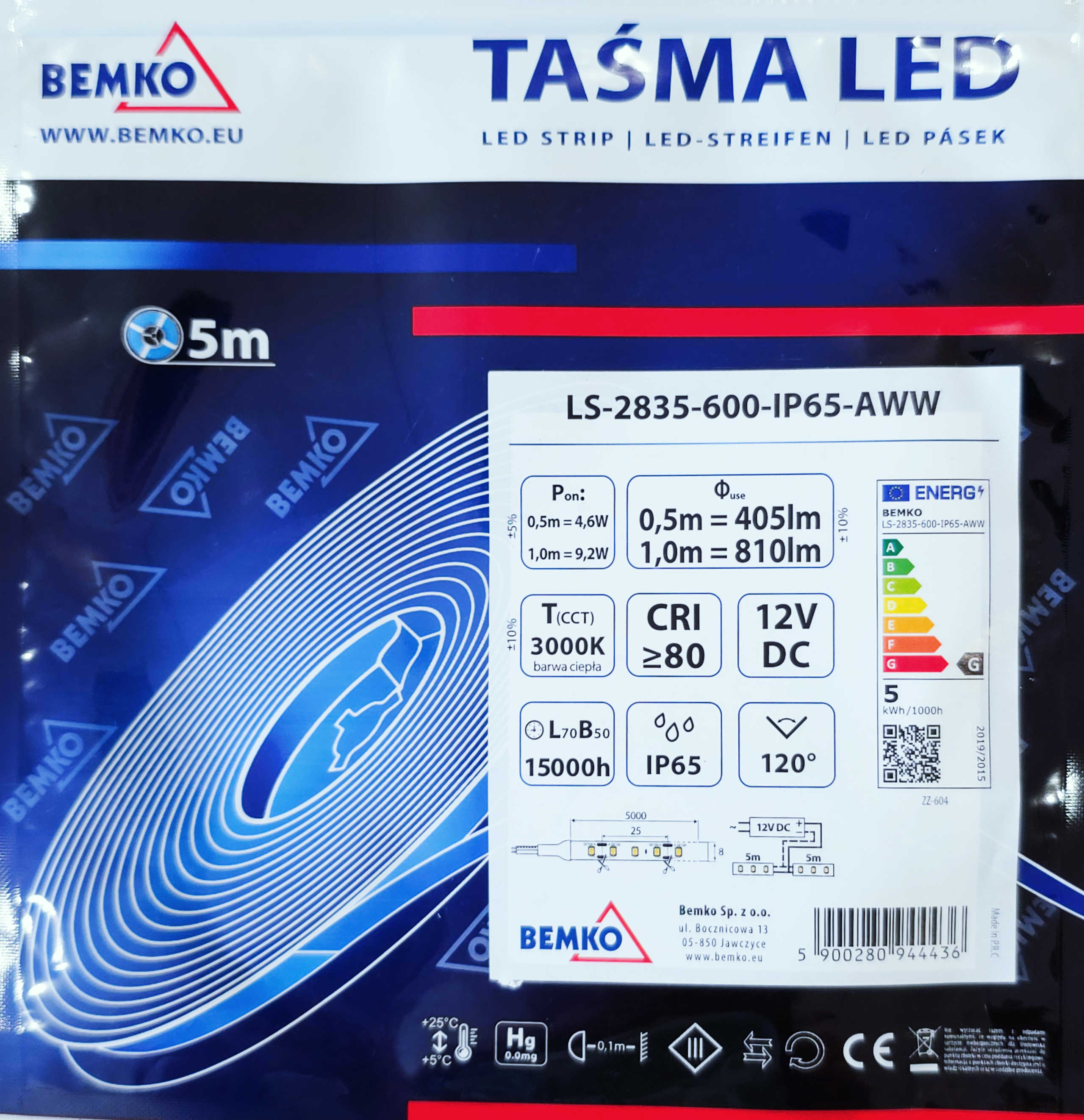 Detali informacija Kodas: 11285, Juosta LED 9.2W/1m 120LED/m 3000K 810lm IP65 12V PREMIUM (LED112575) BEMKO