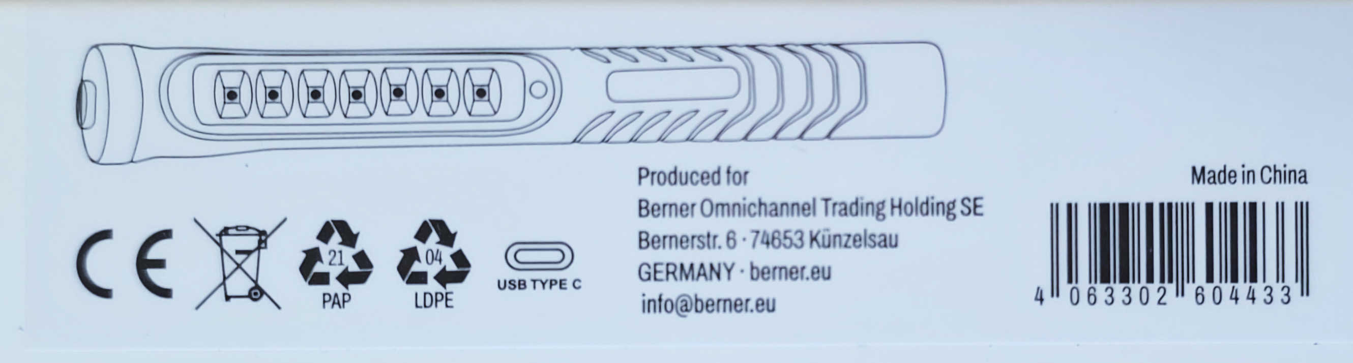 Detali informacija Kodas: 11287, Šviestuvas garaž LED 3W+1W Micro USB-C Premium V kraun 3.7VDC/750 mAh BERNER Oranž (1006910) Vokietija-Kinija