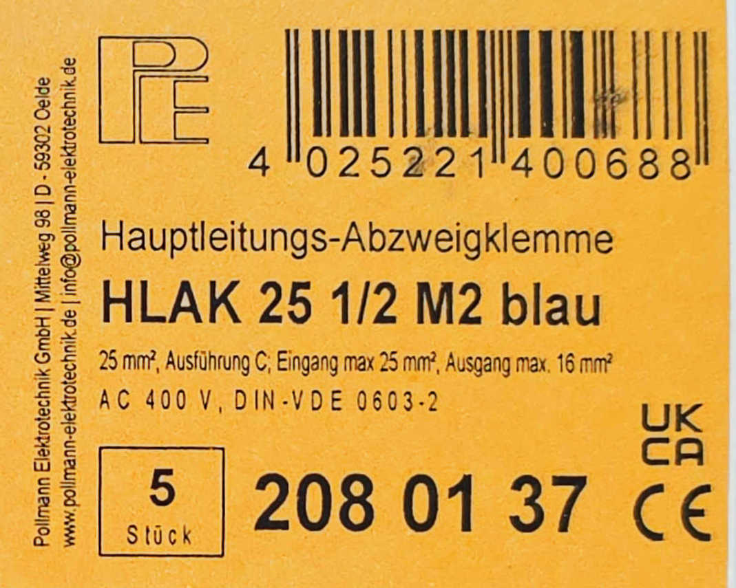 Detali informacija Kodas: 11293, Gnybtas skirst-sujung 1P (Mėlynas) In: 2x1.5-25mm², Out: 2x1.5-25mm² HLAK Polimann (208.01.37)