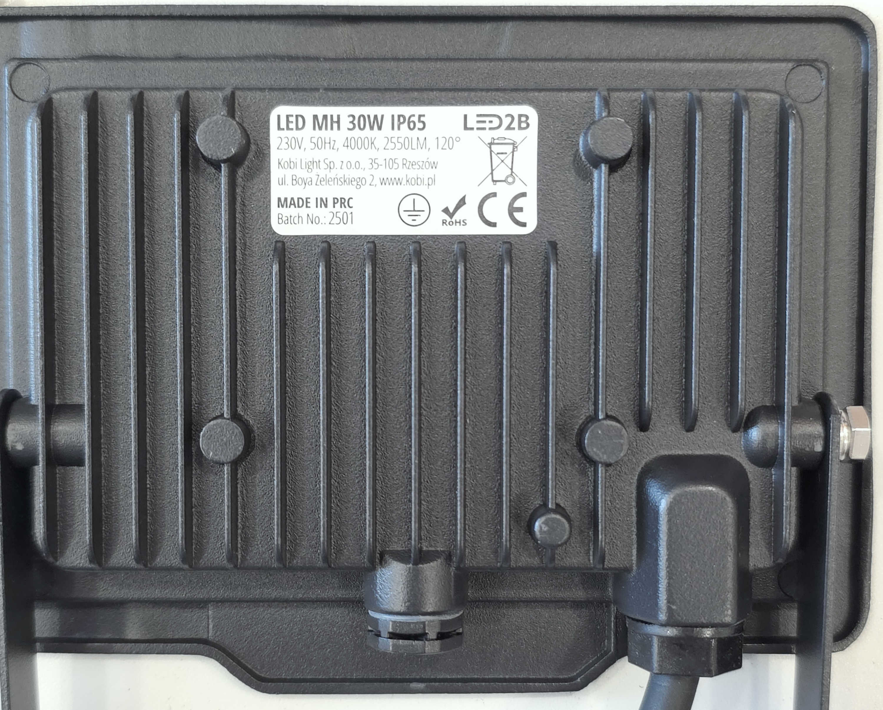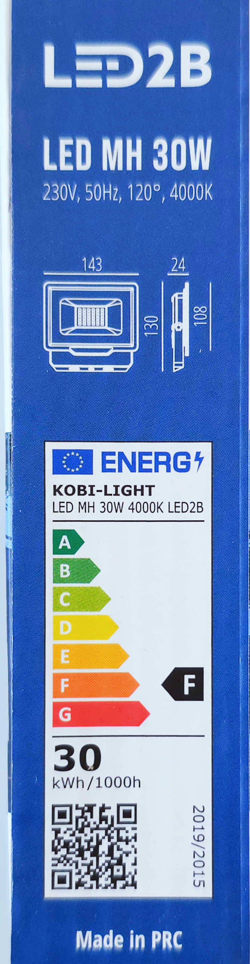 Detali informacija Kodas: 11306, Šviestuvas LED prožekt 30W 4000K 2550lm IP65 MHC PL Kobi-Light SKU 001653 (LED101346)