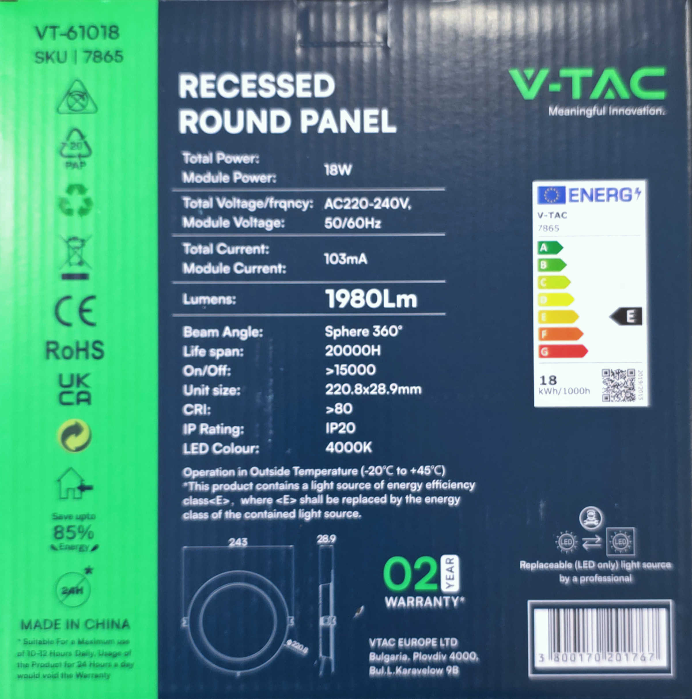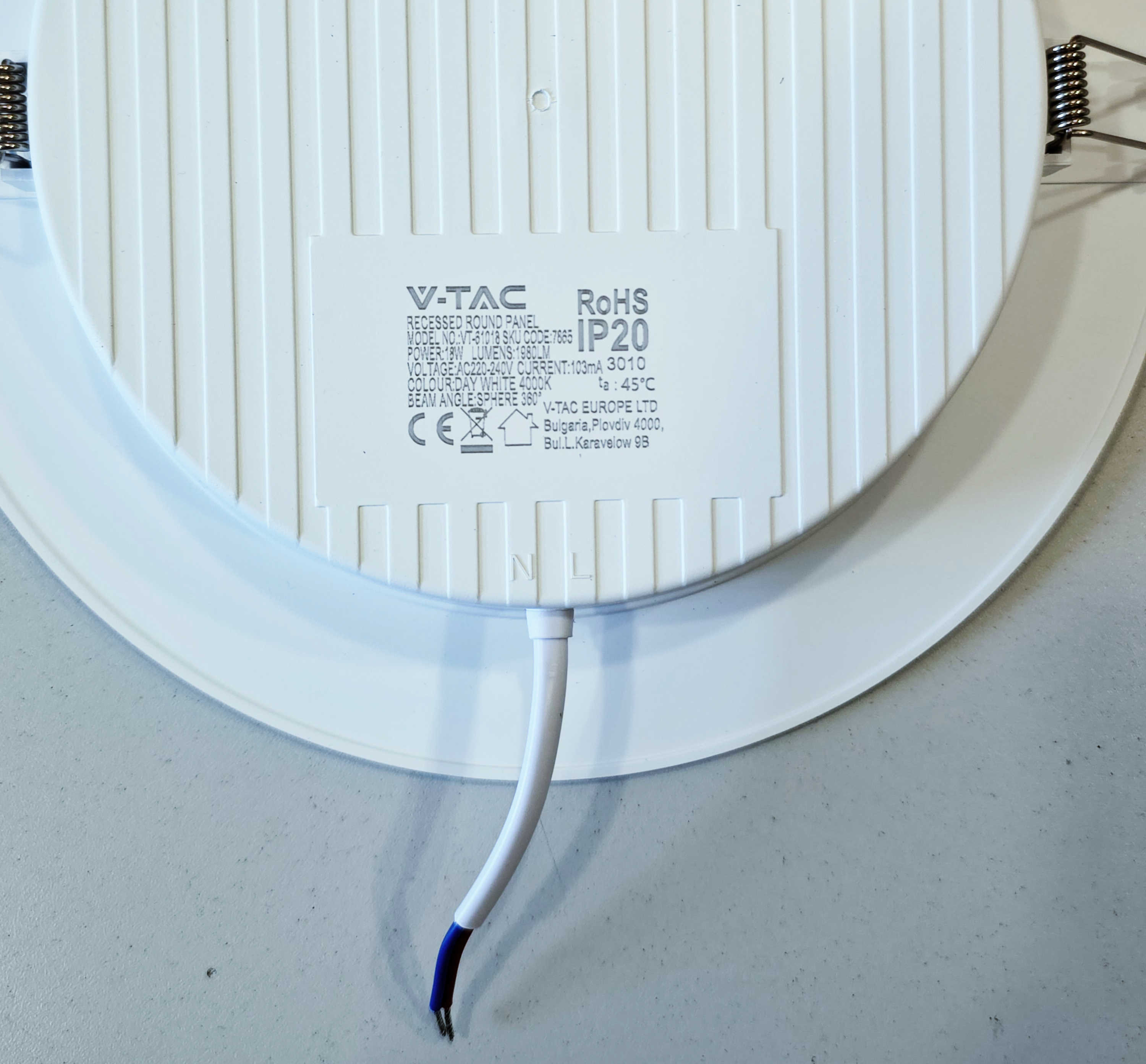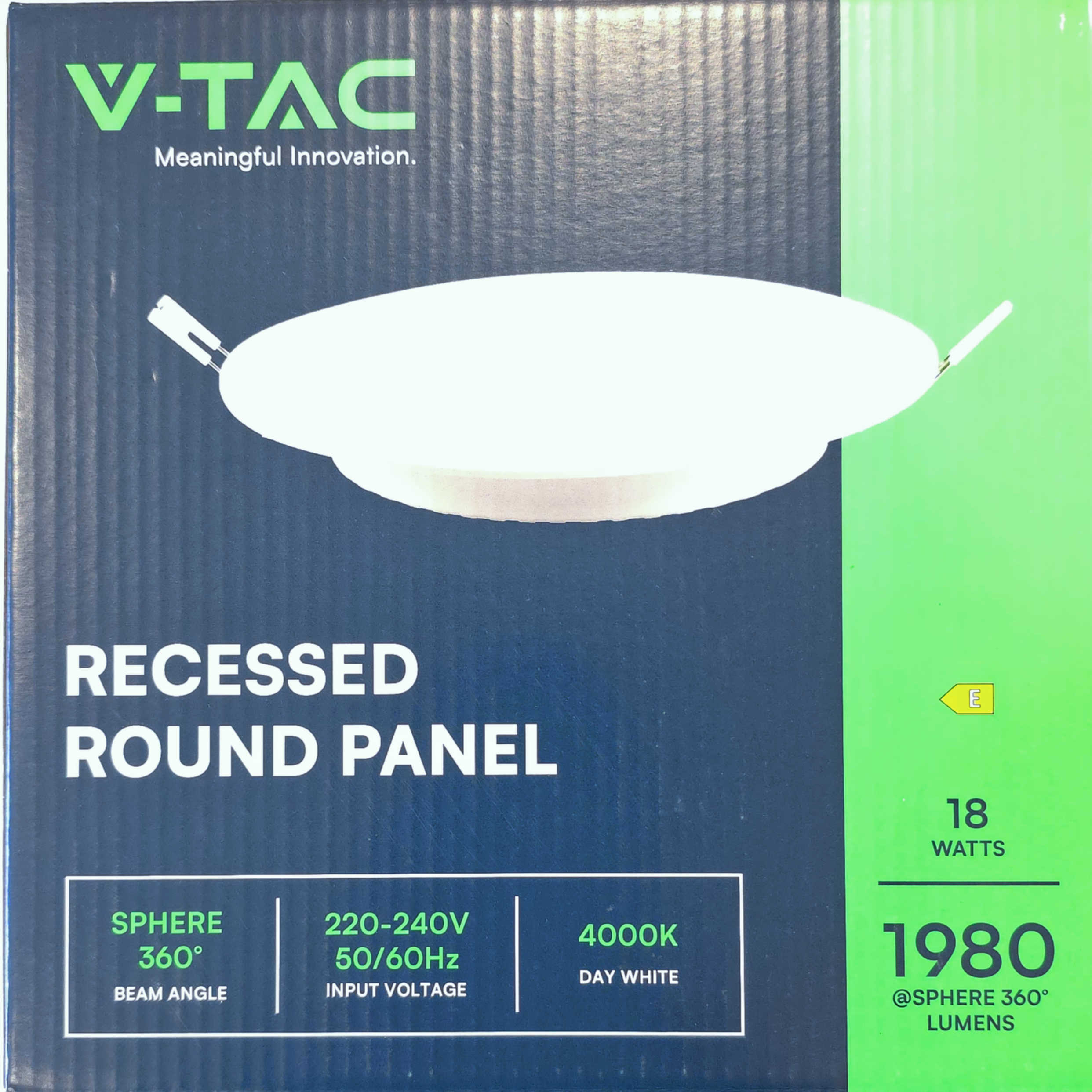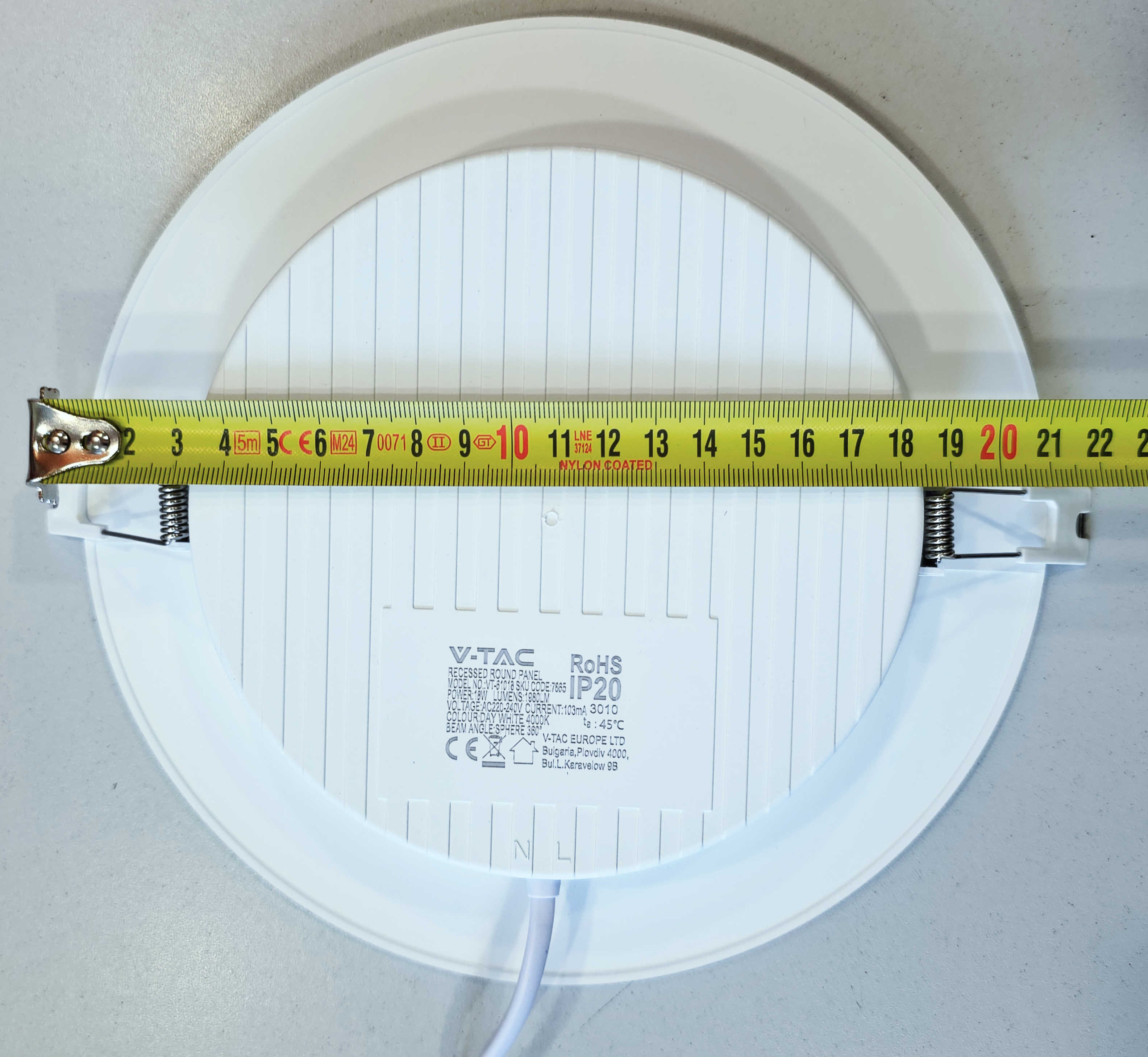 Detali informacija Kodas: 11321, Šviest. LED Skydas įl 18W apval D225x210 4000K/1980lm IP20 su šaltiniu V-TAC VT-61018 (LED89047)