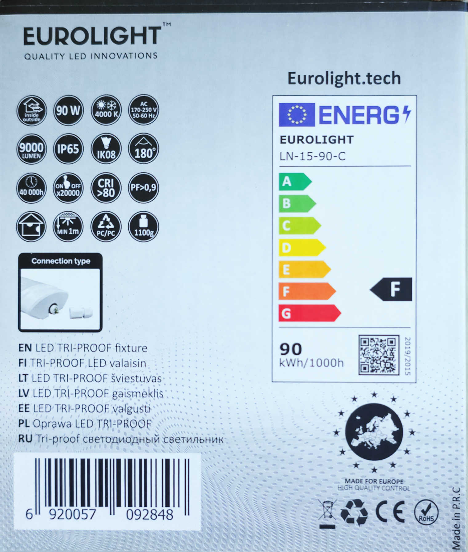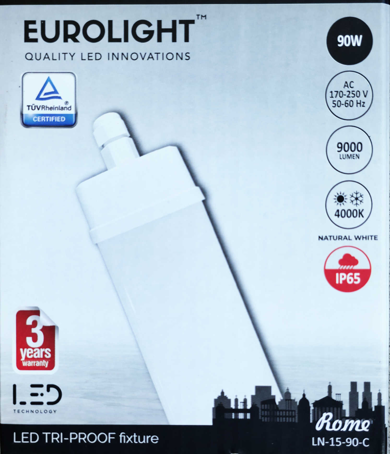Detali informacija Kodas: 11329, Šviestuvas pav LED 90W 150cm IP65 4000K 9000lm 1 galų ROME IK08 Eurolight (LN-15-90-C)(10)