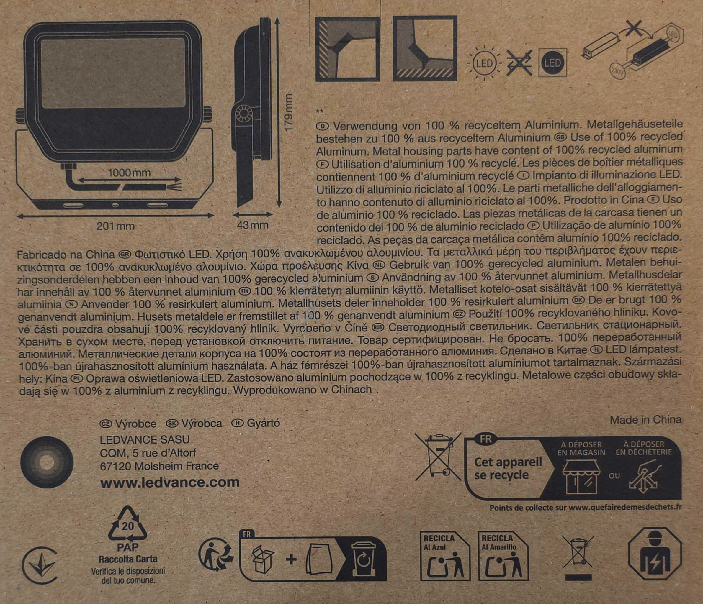Detali informacija Kodas: 11374, Šviestuvas LED prožekt 41W-27W 4000K 6000lm 4000lm IP65 Flood LEDVANCE Juodas reguliuojama galia 6KLM 840 PS SY100 BK (AC598420055)