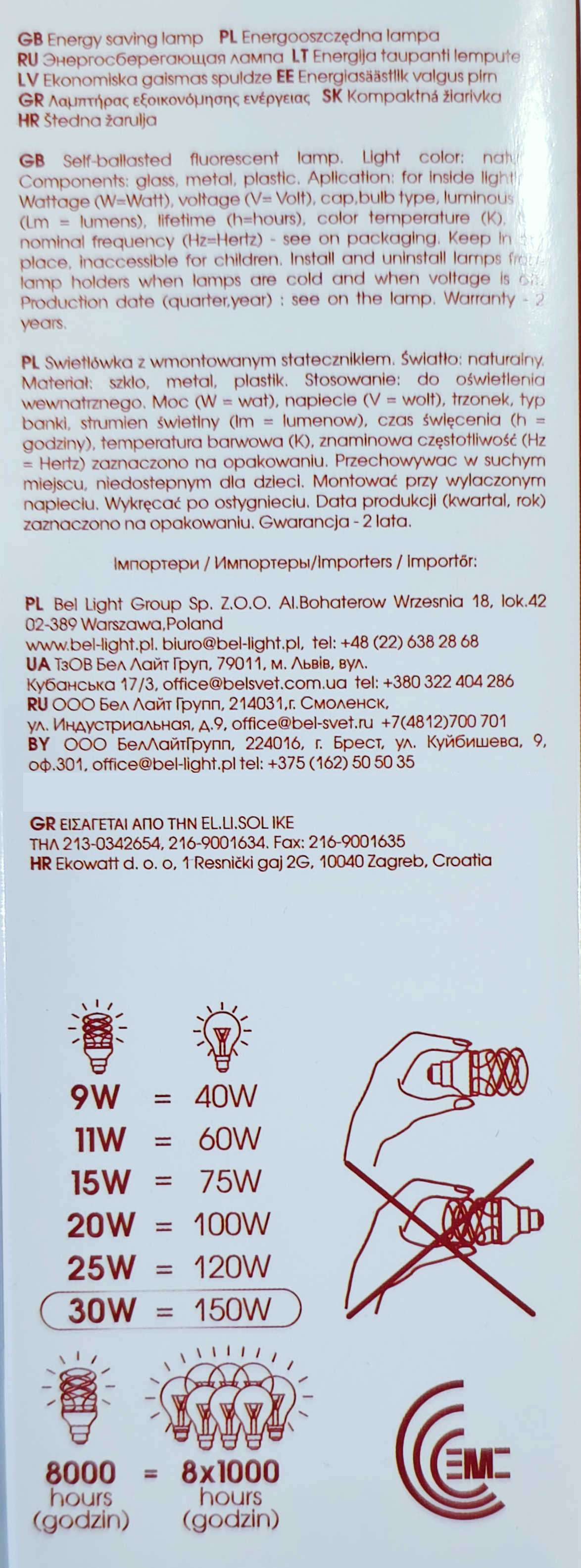 Detali informacija Kodas: 11377, Lempa lium Ekonom 30W spiral E27 4000K 1950lm (568331) Bellight