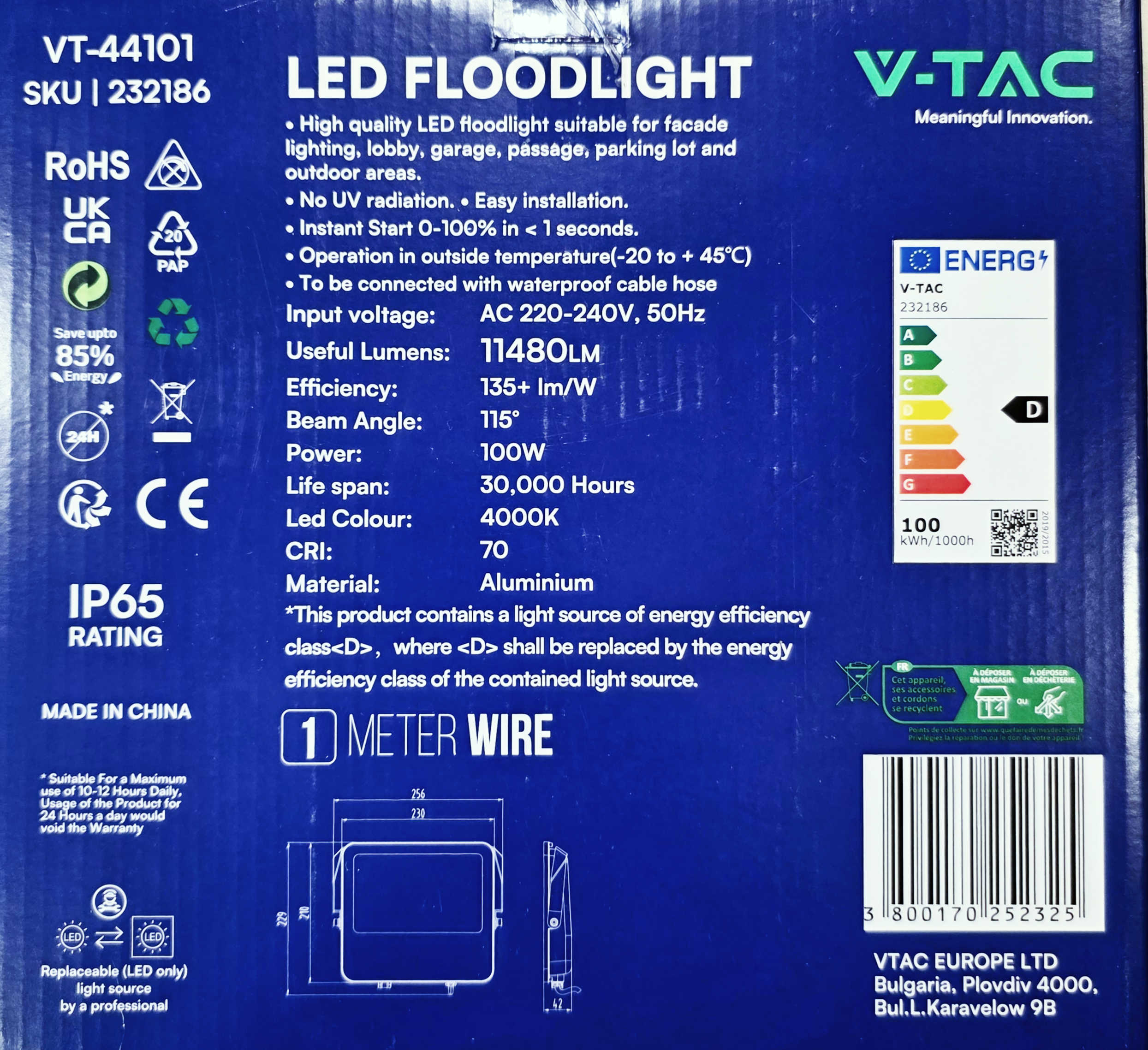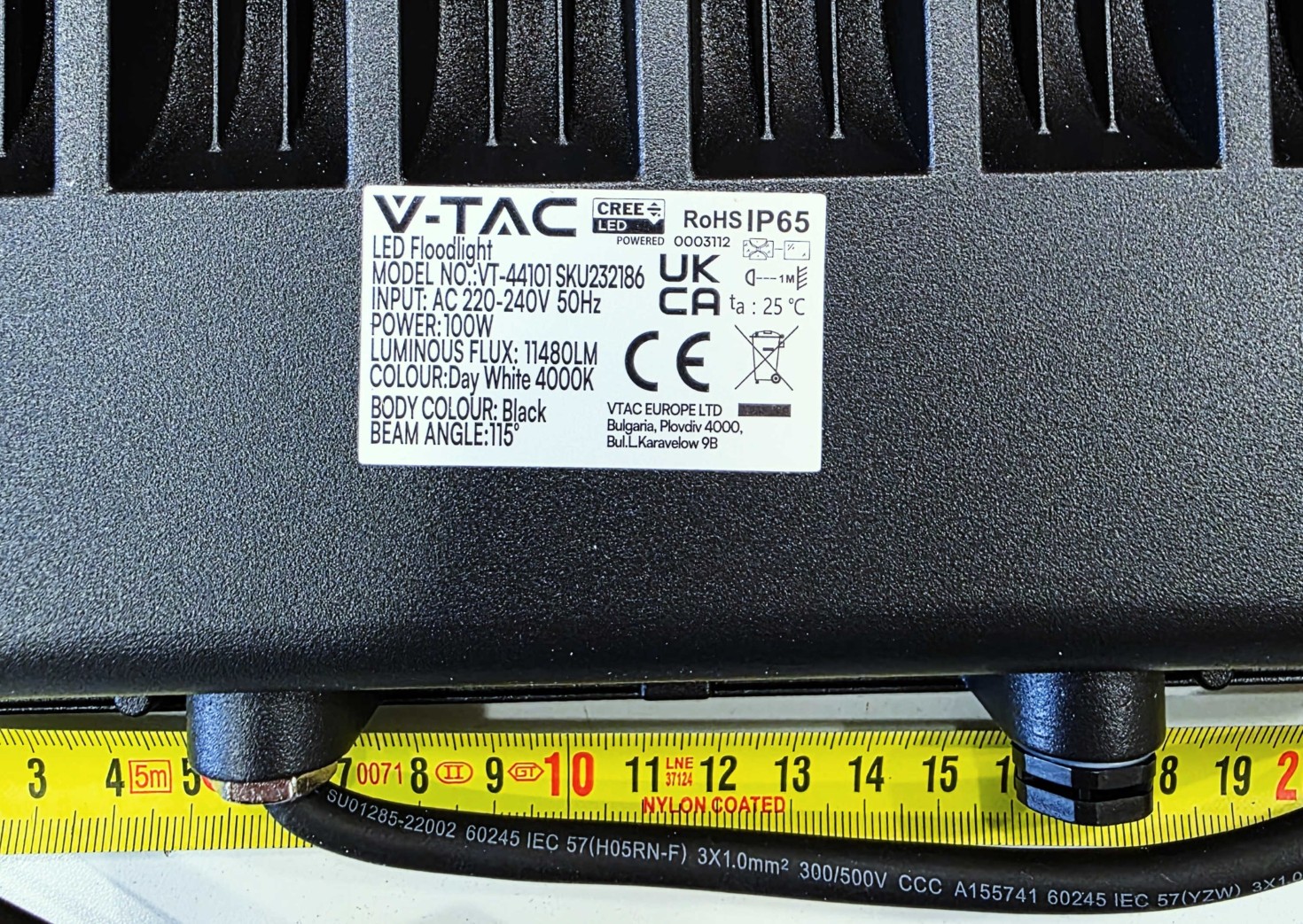 Detali informacija Kodas: 11387, Šviestuvas LED prožekt 100W 4000K 11.480lm IP65 CREE LED CHIP V-TAC VT-44101 (LED117356)(4)