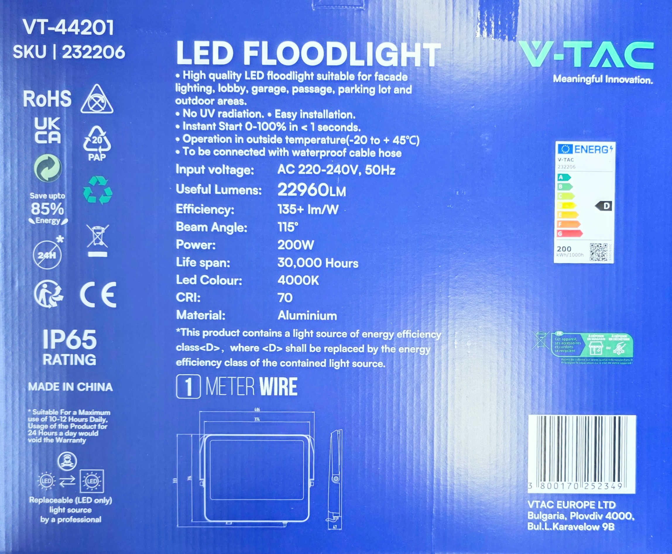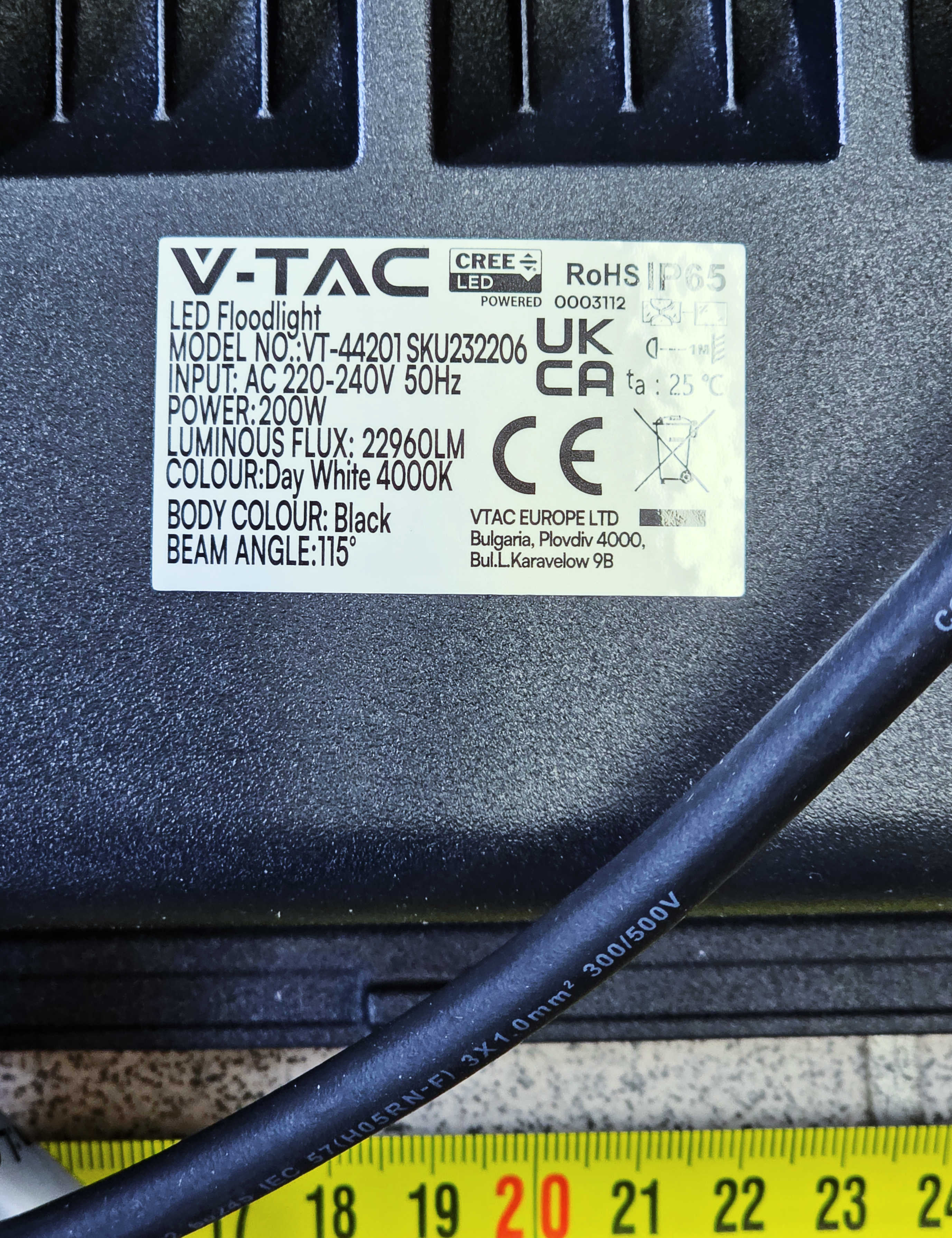 Detali informacija Kodas: 11388, Šviestuvas LED prožekt 200W 4000K 22960lm IP65 CREE LED CHIP V-TAC VT-44201 (LED117354)(4)