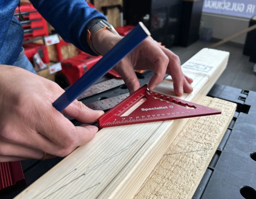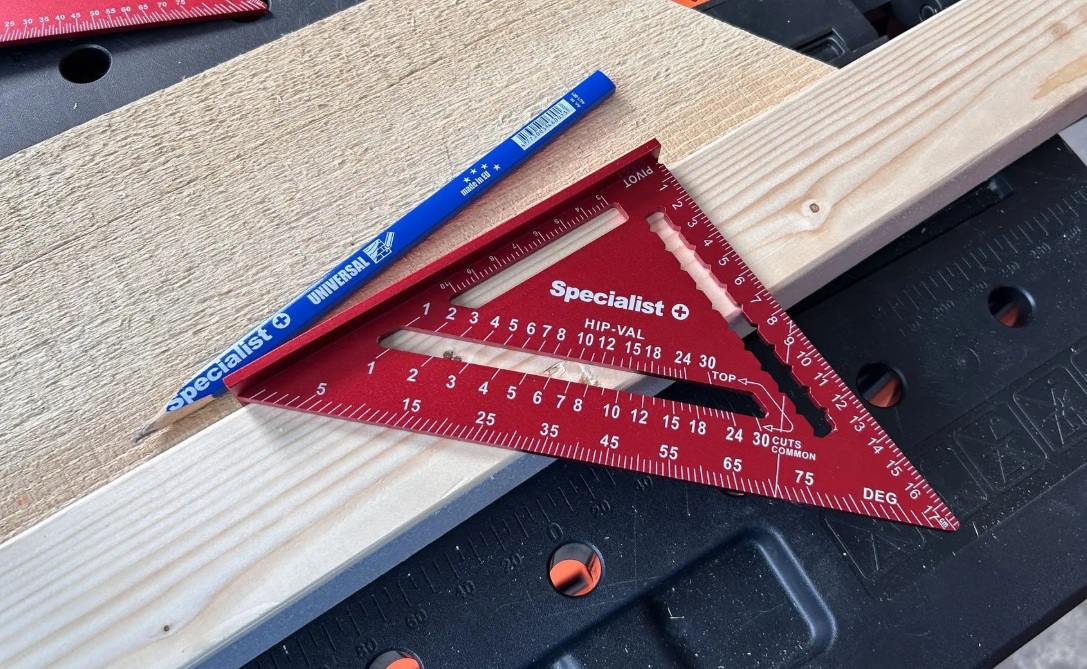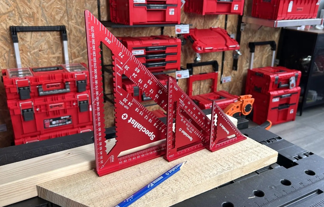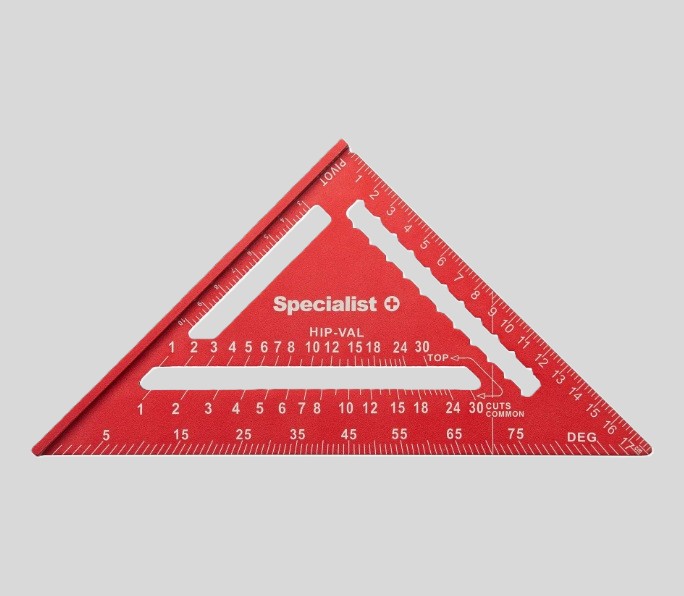 Detali informacija Kodas: 11404, Trikampis matavimo 180 mm ALIUMINUM RAFTER SQUARE SPECIALIST+ (29-1180) (4779052493523)