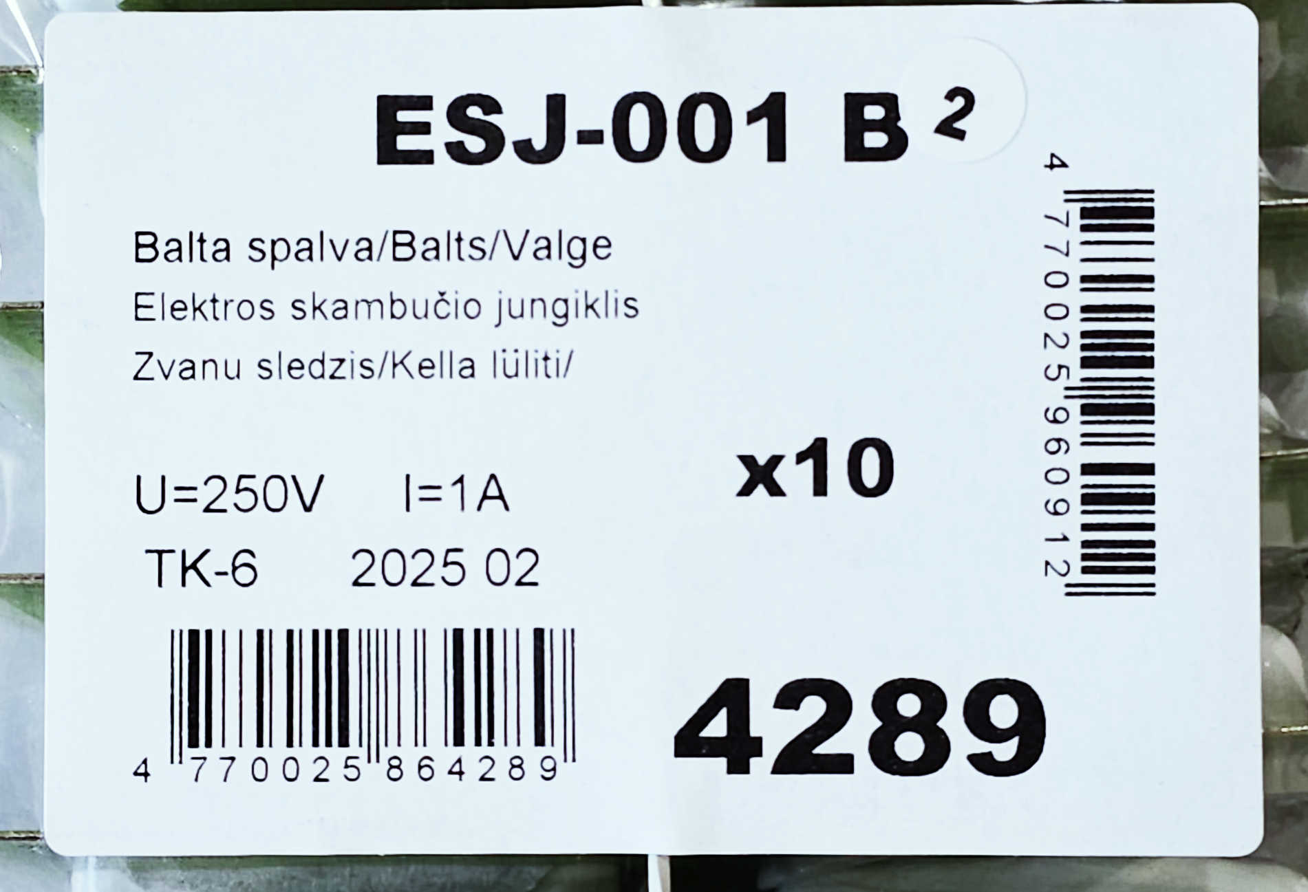 Detali informacija Kodas: 2429, Jungiklis pav. skambut. ESJ-001 1A (50857866, 25864289)