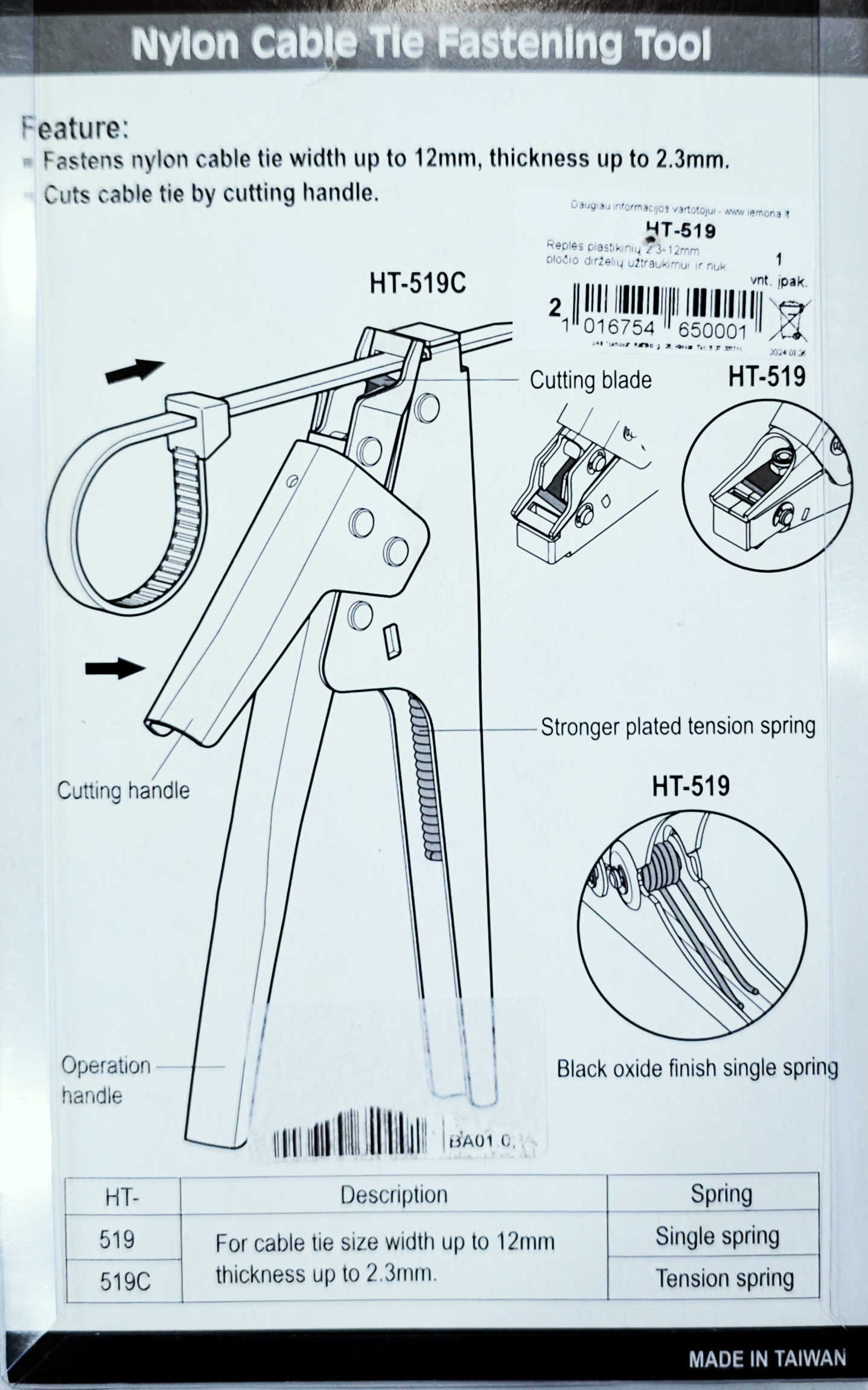 Detali informacija Kodas: 4170, Užtraukiklis dirželiams (2.3~12mm) hanlong Tools (HT-519)