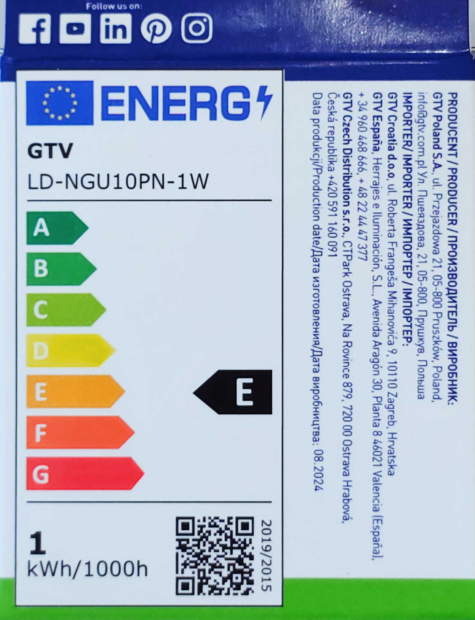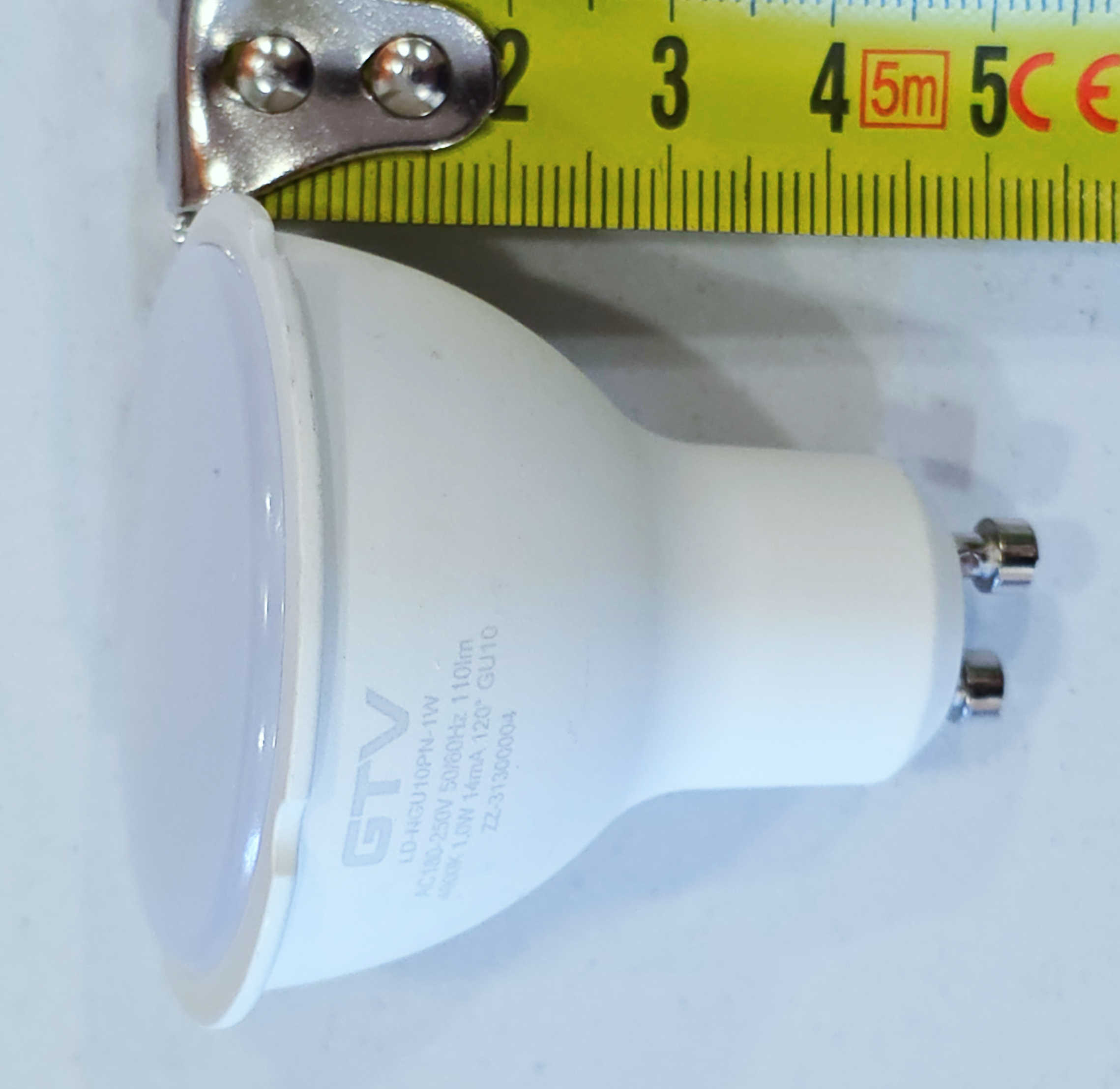 Detali informacija Kodas: 558, Lempa LED GU10 1W 220V 120° 4000K 110lm LD-NGU10PN-1W