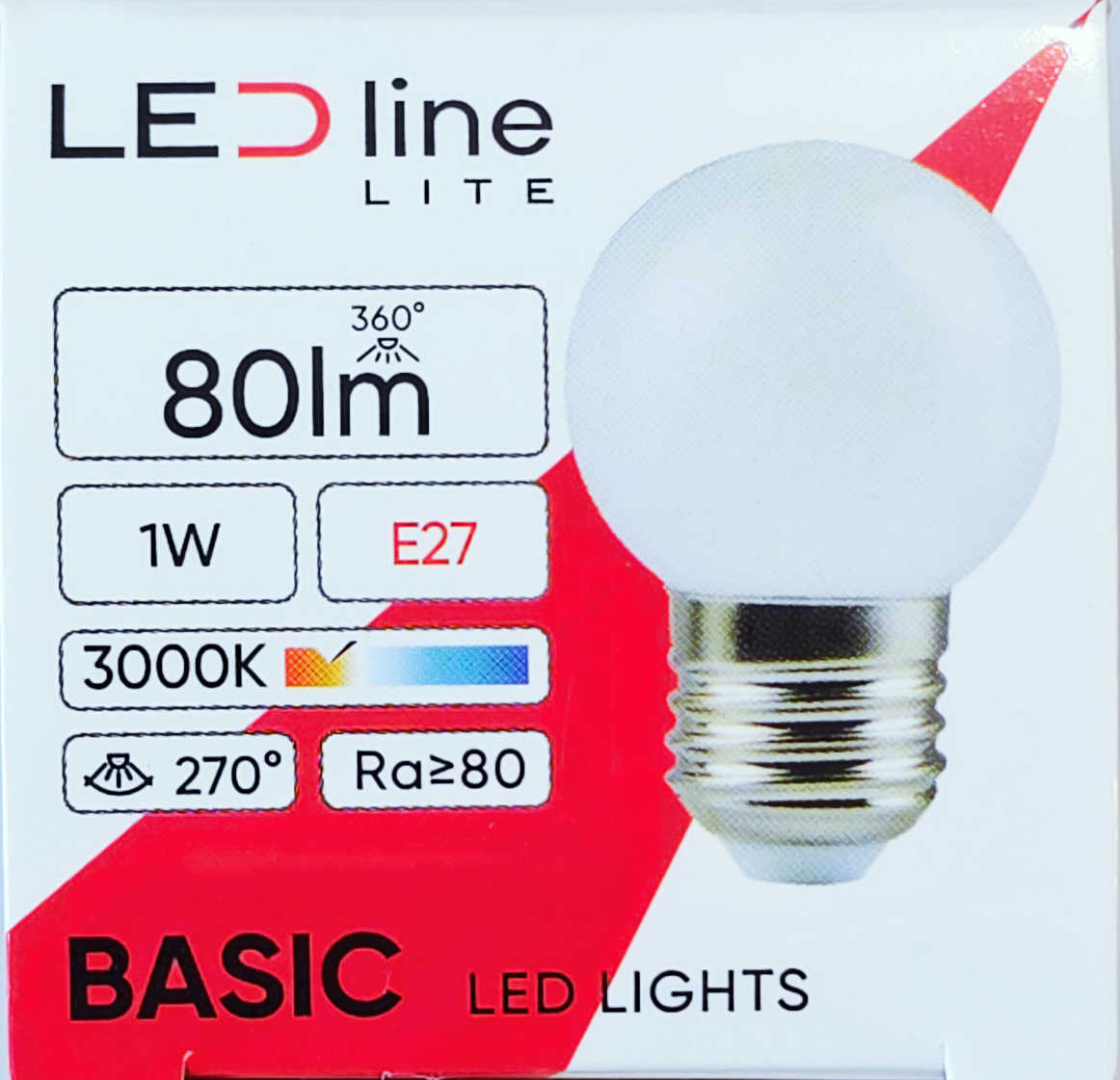 Detali informacija Kodas: 8807, Lempa LED 1W E27 burbulas G45 3000K 80lm (470317) Ledom