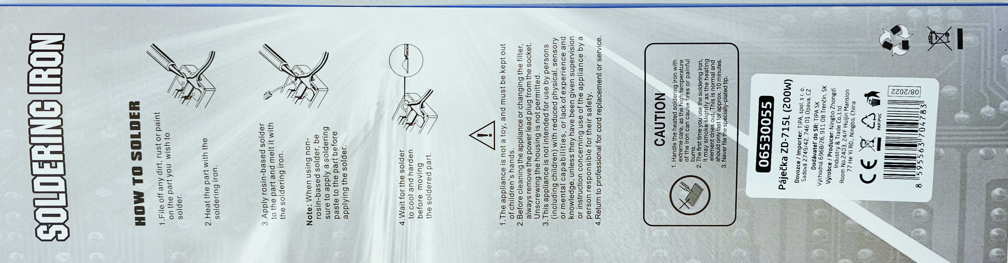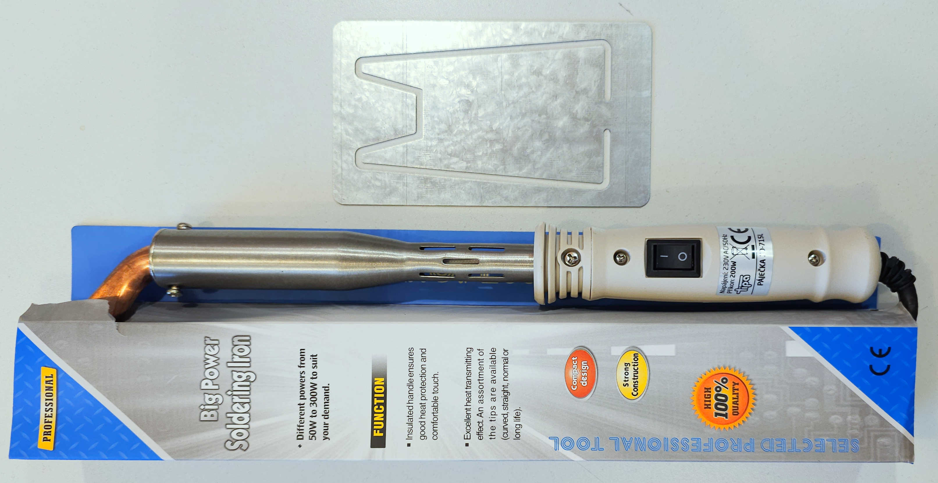 Detali informacija Kodas: 9898, Lituoklis 200W 220V plokšč su mygtuku ZHONGDI (ZD-715L)