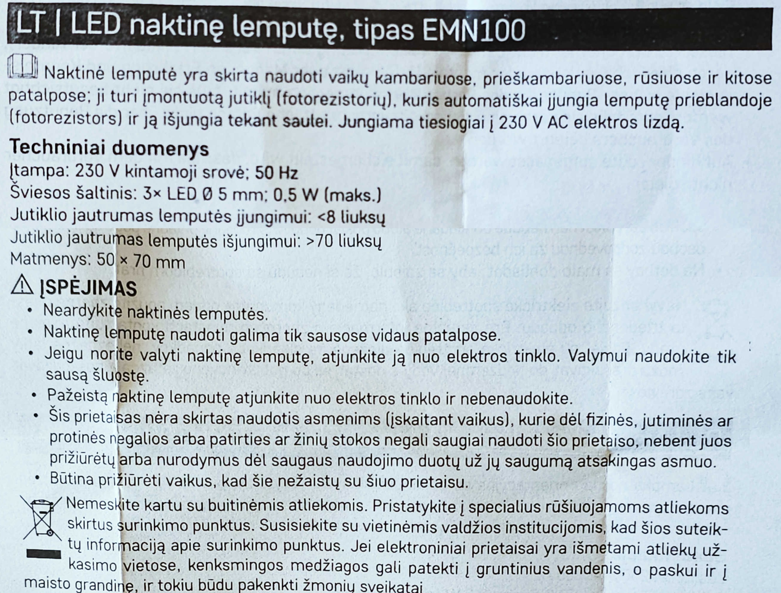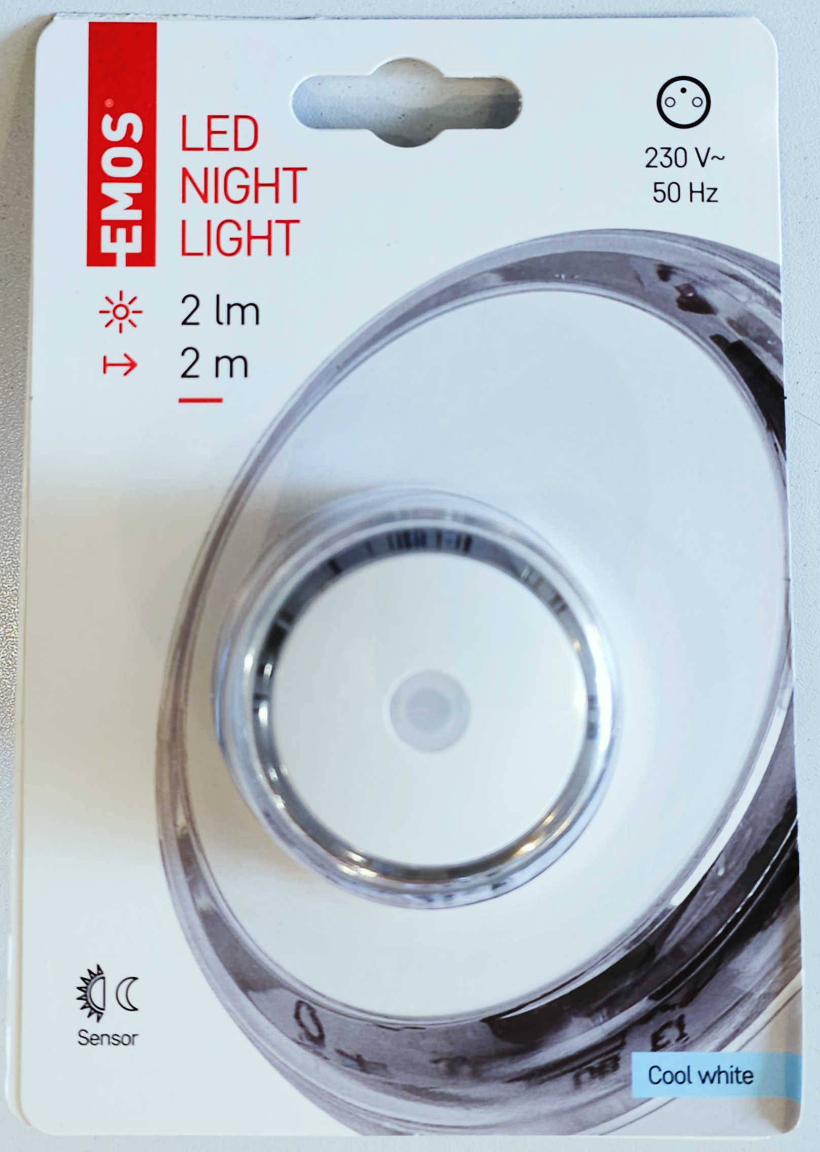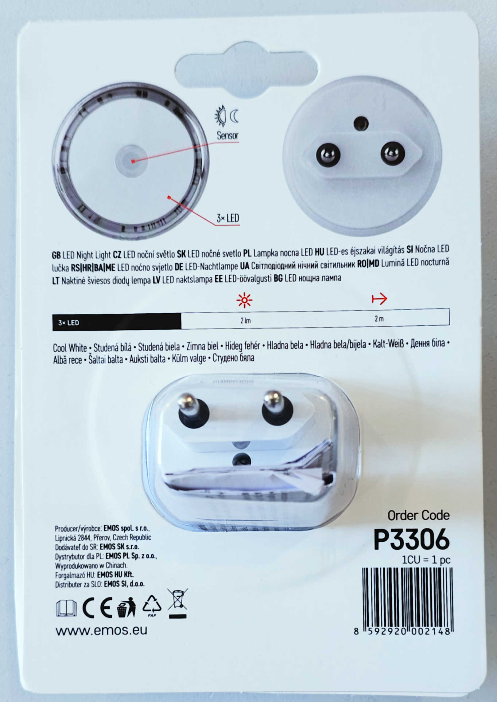 Detali informacija Kodas: 9977, LED naktinė lemputė LED1.5W (3x0.5W) 4000K P3306, 230V AC su šviesos jutikliu EMOS (P3306)