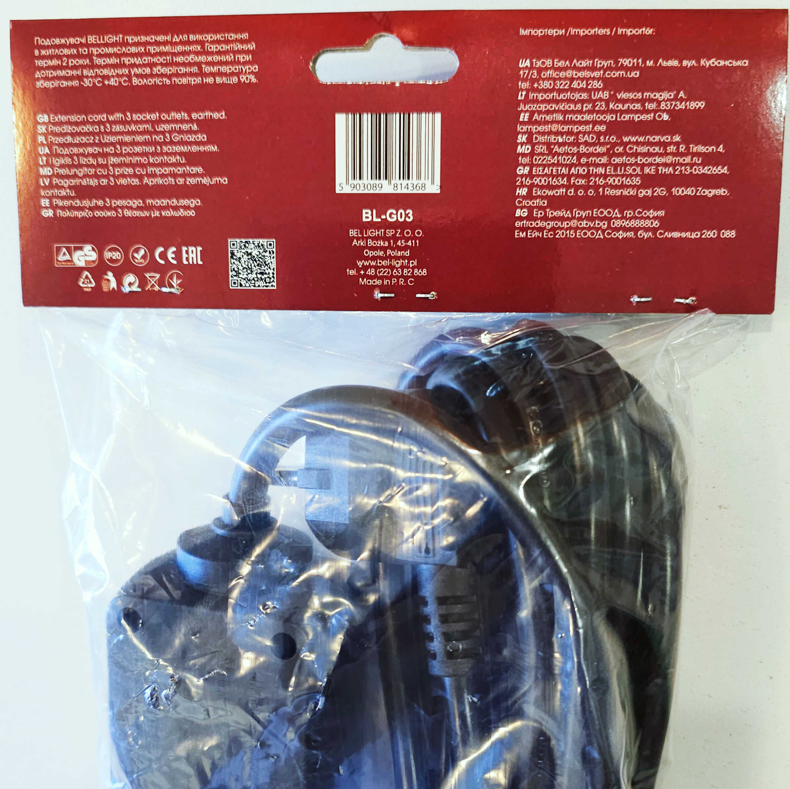 Detali informacija Kodas: 9983, Prailg. 5m 3V s/ž 3x1,5 Juodas Bellight (5903089814368)
